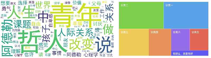 如下圖,詞云圖和對比樹狀矩形圖,將文字與數(shù)值完美結(jié)合的。